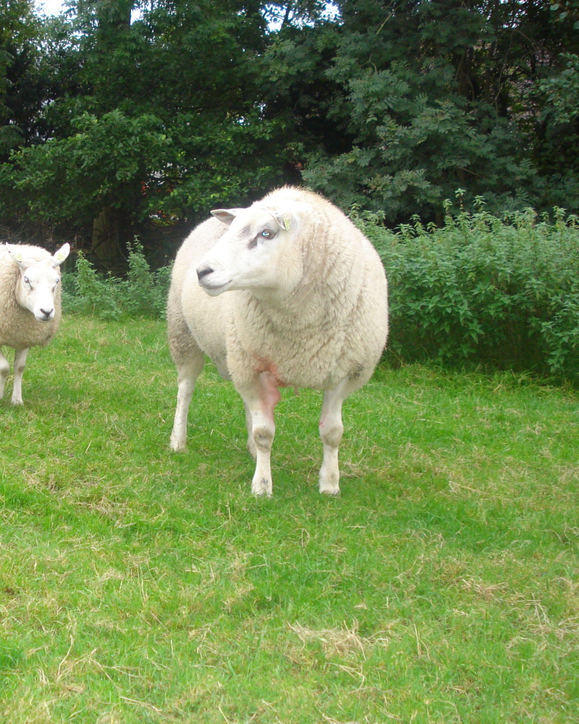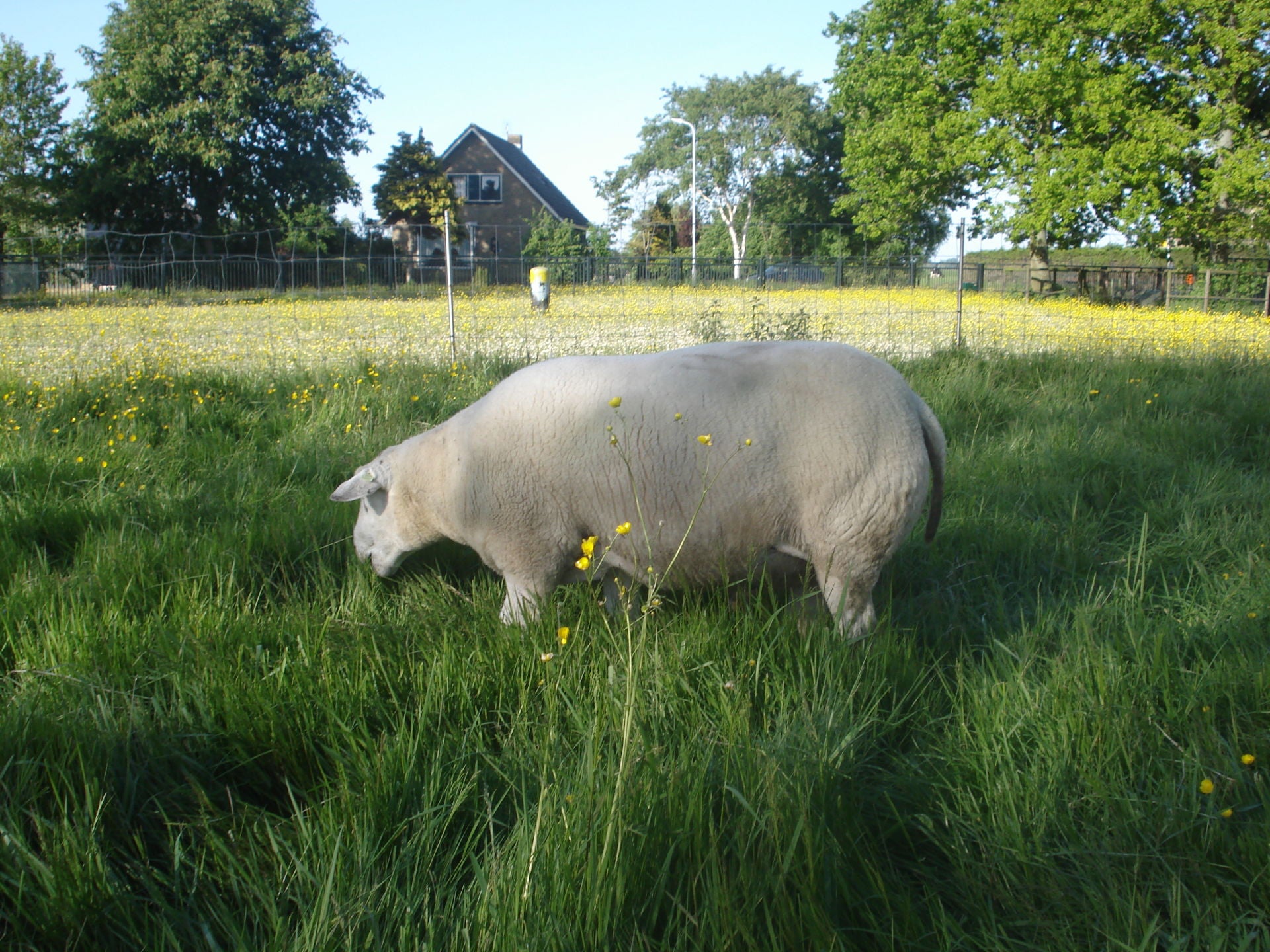 Hier onder Ram Gigant als eenjarige Ram net na het scheren( begin mei). Hij heeft erg veel ruimte in zijn voorhand voor een swifter.