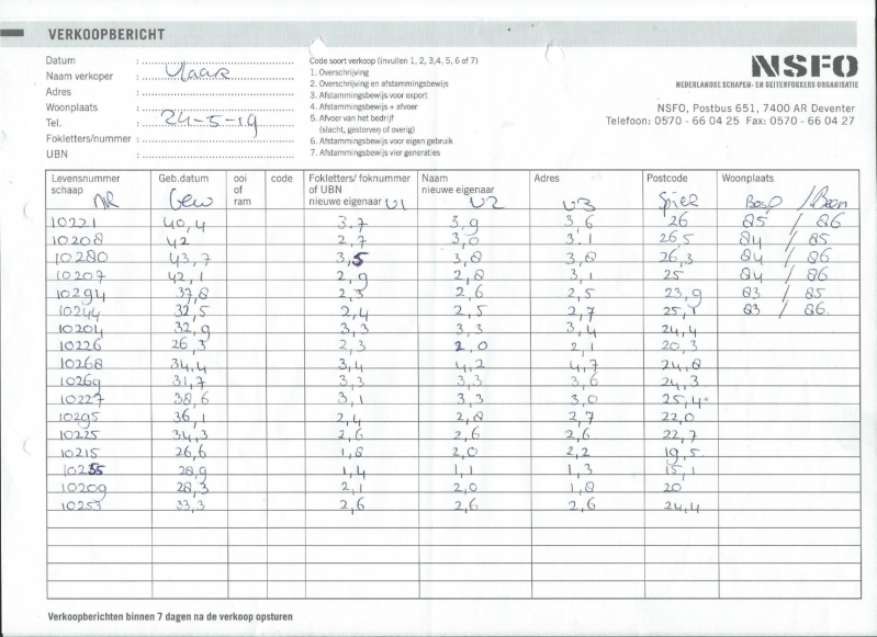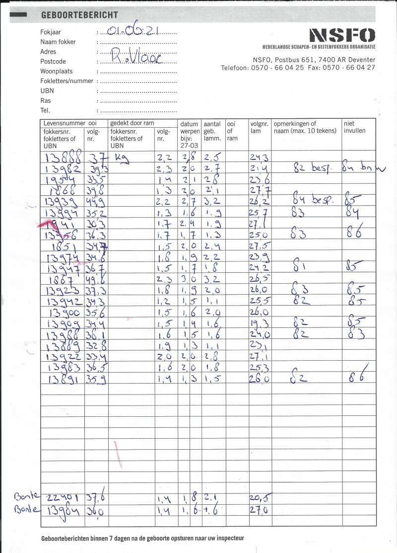 Hier zijn wij erg blij mee en deze Ram gaan we zelf inzetten. De nakomelingen van 8948-87655 hebben het erg goed gedaan en mogen bij andere fokkers hun goede genen gaan doorgeven. De gekeurde Rammen zaten met hun groei bijna allemaal boven de 450 gram per dag waar we erg tevreden mee zijn.